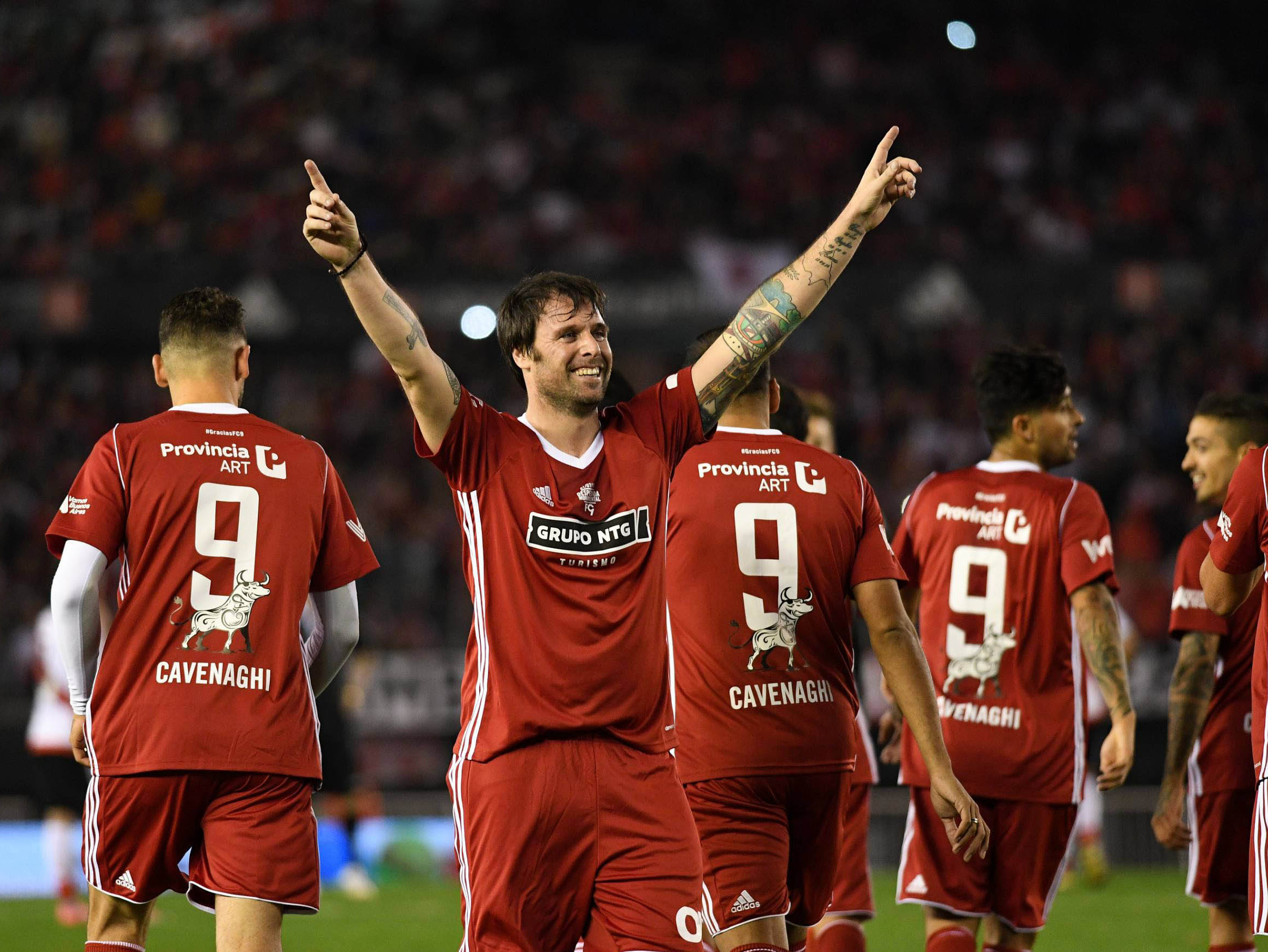 El ‘Torito‘ Cavenaghi, autor de cuatro goles en el partido homenaje de ayer, se juntó en la cancha con el jujeño Ariel Ortega, el uruguayo Enzo Francescoli, el actual DT Marcelo Gallardo, el cordobés Pablo Aimar, Eduardo Coudet, Alejandro “Chori” Domínguez y Marcelo Salas, entre otros jugadores históricos del club y fue dirigido por Ramón Ángel Díaz y Rubén Américo “Tolo” Gallego, el entrenador que lo hizo debutar en primera división. ‘Esto no es una despedida, es un homenaje, porque de este club no pienso irme nunca más. A toda esta gente que trabaja en la institución, a mi familia, que me acompañó siempre en mi gran sueño que era jugar al fútbol, les agradezco. Estoy muy orgulloso de formar parte de este club‘, completó el ‘9‘.