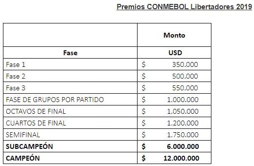 El Xeneize, en cambio, recibió US$ 1.750.000 más por haber llegado a meterse entre los cuatro mejores del torneo continental y acumuló US$ 10.000.000.