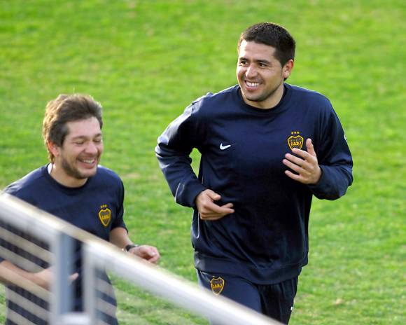 Riquelme, recuperado de un esguince en su tobillo derecho, participó ayer de la práctica de fútbol e integró el equipo de los suplentes en el primer tiempo y el equipo titular en el segundo.