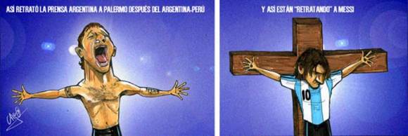 En contraste, del lado izquierdo se ve a Messi cual si fuera un Jesucristo, bajo las siguientes palabras: "Y así están retratando a Messi".
