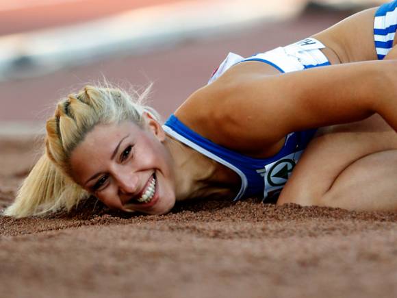 Papachristou, de 23 años, especialista en salto triple, bromeó con el virus del Nilo Occidental, una enfermedad de origen africano que produce encefalitis en equinos y humanos.