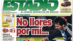 En México, el país que firmó su peor participación histórica en la Copa América, destacaron un: "No llores por mi Argentina", con una foto de Messi en el piso.
