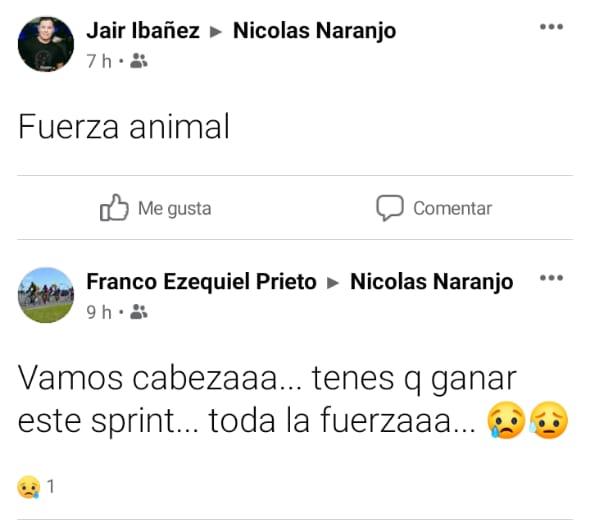 De inmediato, las redes sociales se llenaron de mensajes de pronta recuperación para el pedalero que se encuentra hospitalizado en la vecina provincia.