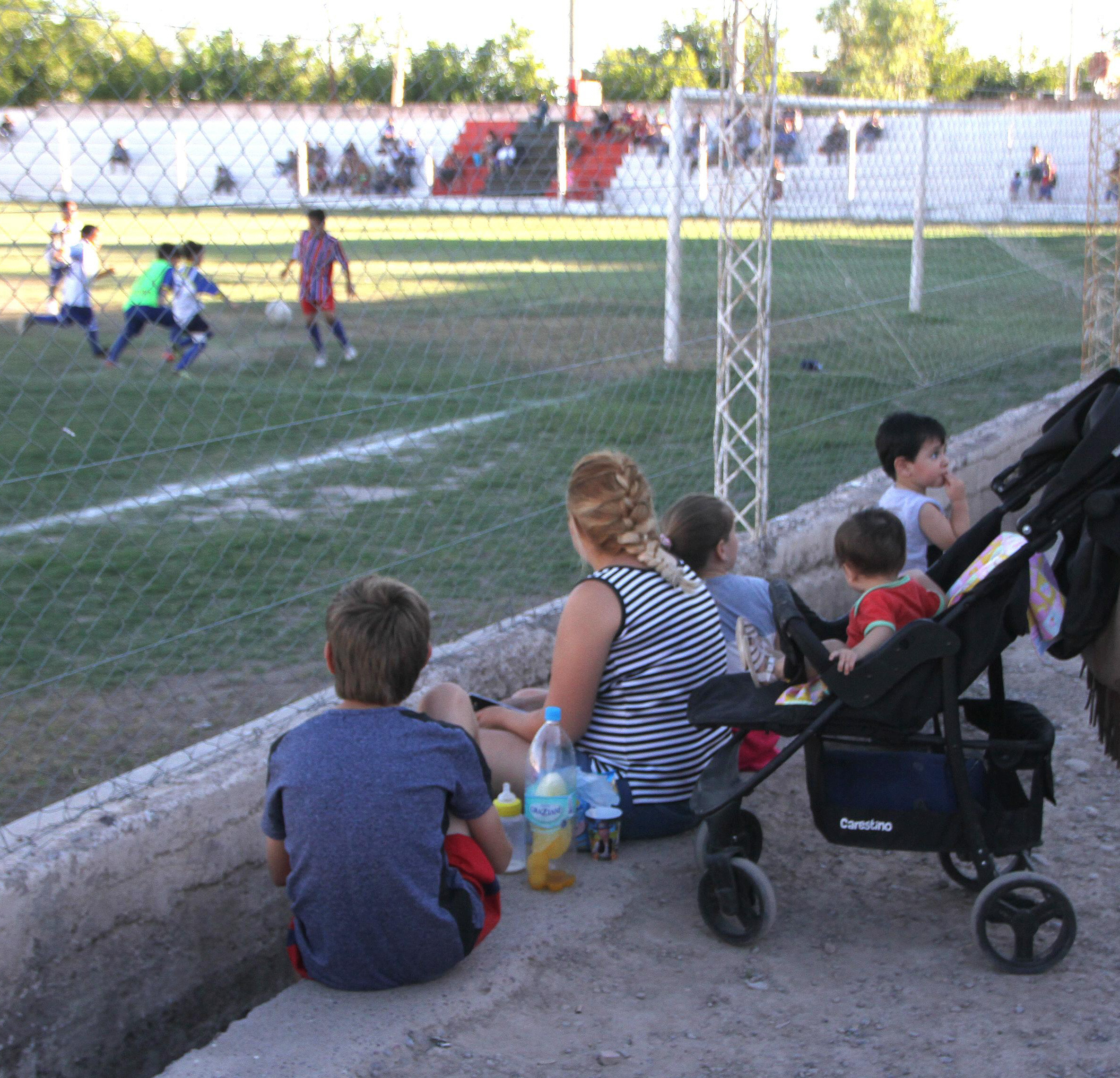 Algunos de los papás que hoy acompañan a sus hijos jugaron el Mundialito hace varios años y hoy están del otro lado, tanto en las tribunas tomando mate como con los brazos apoyados sobre los alambrados de la cancha, alentando a sus hijos.