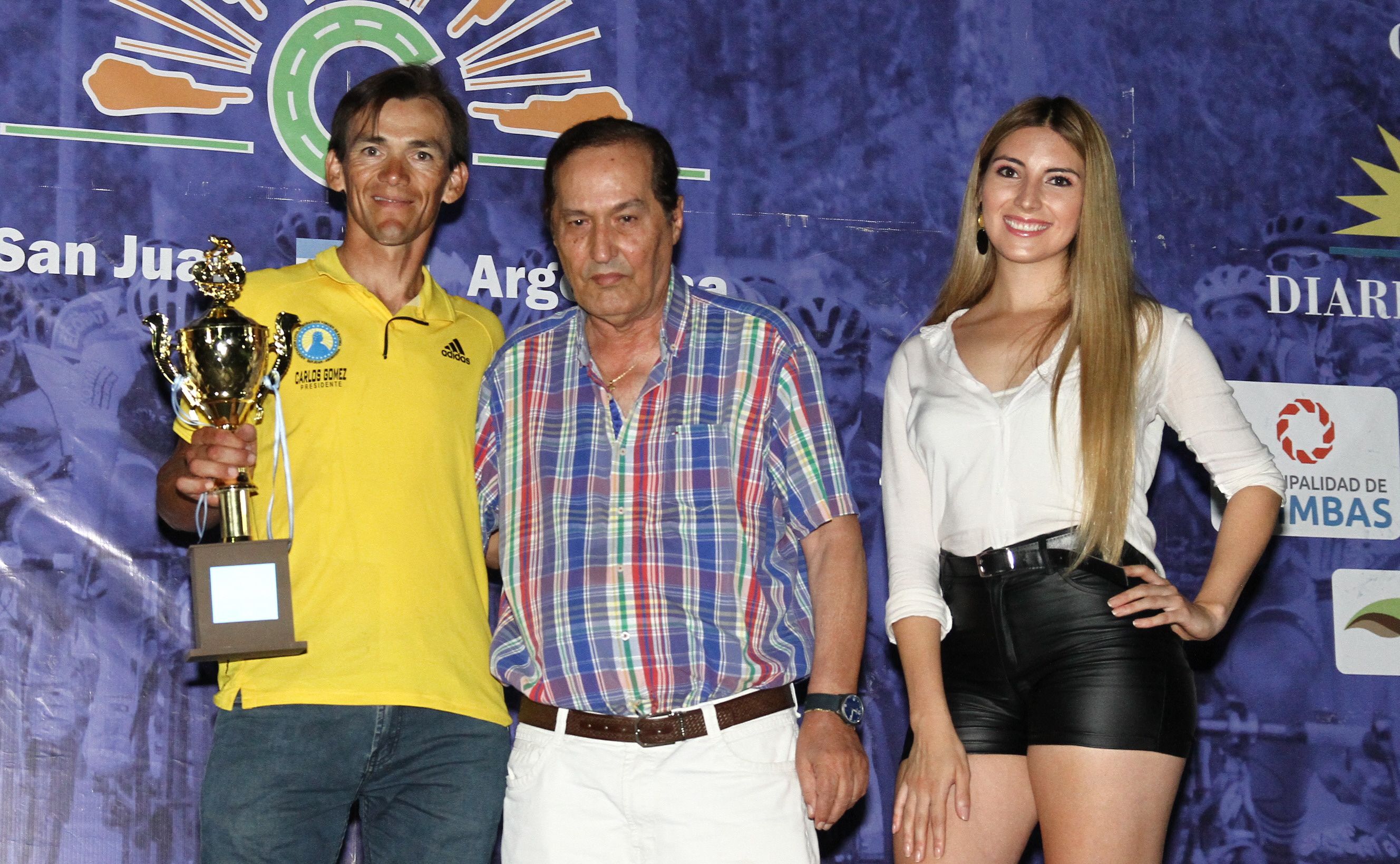 El podio de Sub-23 recibió sus premios. El malla líder Leonardo Cobarrubia (5to en la general), Leonardo Rodríguez (12) y Santiago Sánchez (15).