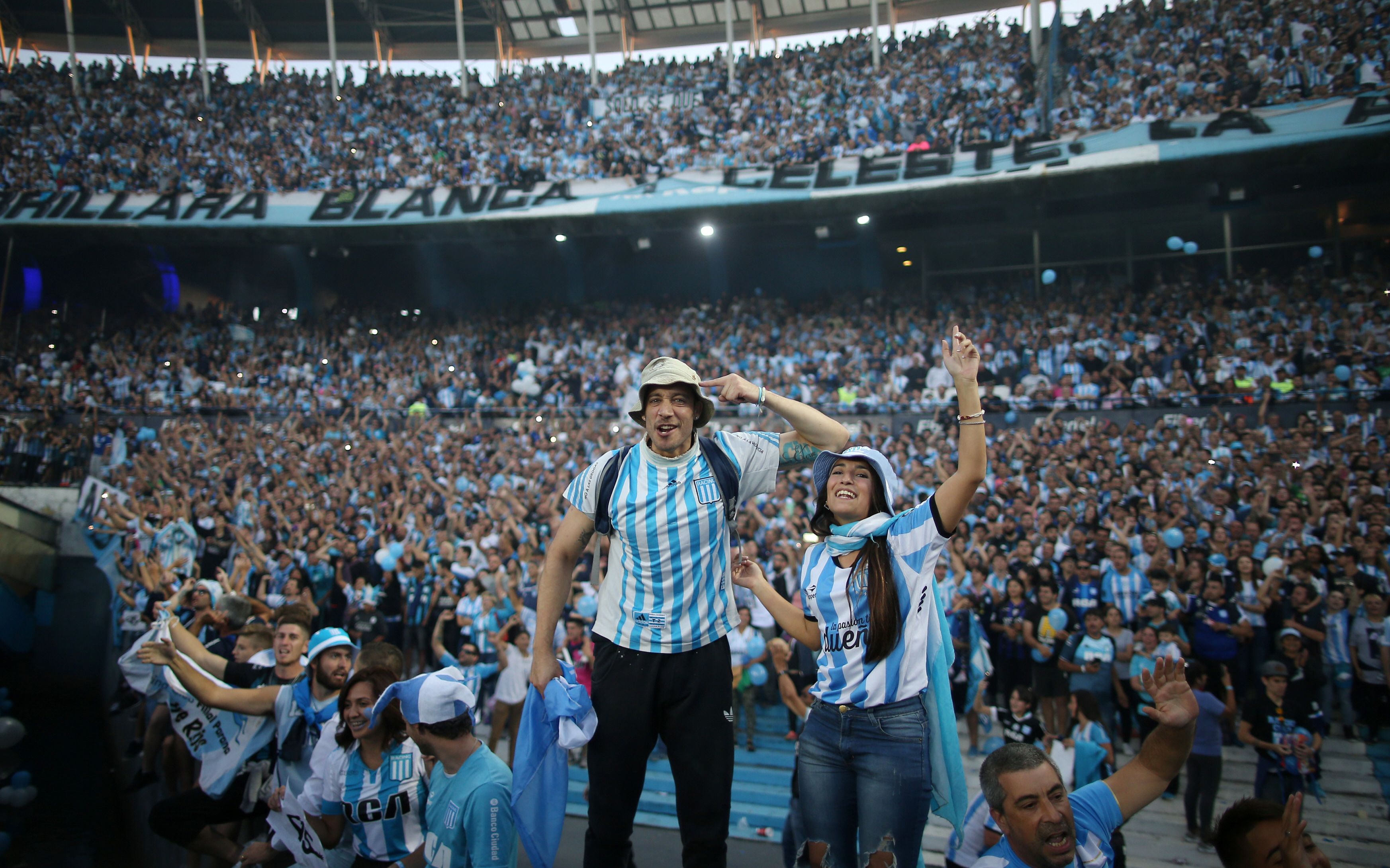Llegó la hora de la vuelta olímpica. De las fotos del cuerpo técnico -todos con la camiseta de Racing puesta- con la copa. De los abrazos interminables. De la ovación de los hinchas. De Queen de fondo. Primero con We will rock you y luego con el famoso We are the champions con un video alusivo en la pantalla gigante mostrando todos los goles del equipo de Coudet campeón. Un colorido increíble con un Cilindro oscuro e iluminado por los celulares de la gente.