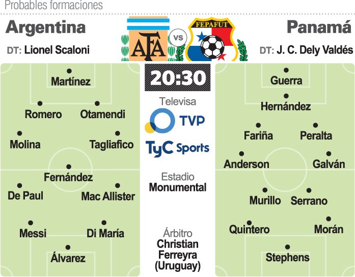 Por otro lado, este será el tercer cruce entre la Argentina y Panamá, con dos triunfos "albicelestes" como antecedente. El primer partido fue un amistoso con el seleccionado local de Diego Maradona en Santa Fe (3-1) en 2009; y luego se cruzaron en la Copa América Centenario de 2016 en Estados Unidos (5-0), con un triplete de Messi, un gol del "Kun" Agüero y otro de Otamendi, quien también estuvo en el primer encuentro.