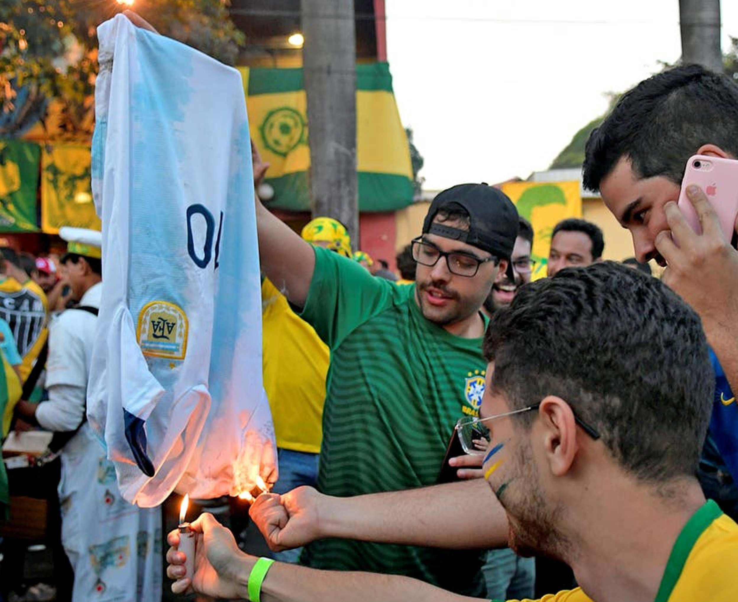 El clima fue hostil antes y durante el partido en el Mineirao. Y además de las gastadas por la victoria,m un grupo de hinchas de Brasil hasta quemó una camiseta de Messi. Fue en la previa del partido y las imágenes rápidamente se viralizaron, causando revuelo no sólo en Argentina sino también en Brasil.