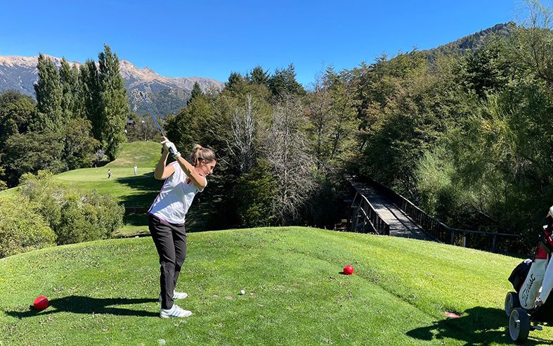 Candelaria Armijo, de San Juan, en plena actividad. El torneo de golf para las damas mañana en Amancay.