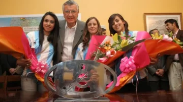 Las tres chicas que llegaron (las otras se quedaron en España) y el cuerpo técnico del seleccionado argentino femenino de hockey sobre patines siguen de festejos luego de su llegada a San Juan. Ayer, en dos actos diferentes, volvieron a mostrar su emoción por el título mundial conseguido en Alcobendas (España) luego que en sendas ceremonias fuesen agasajados por autoridades locales, quienes les entregaron recordatorios y llenaron de felicitaciones luego del logro obtenido.