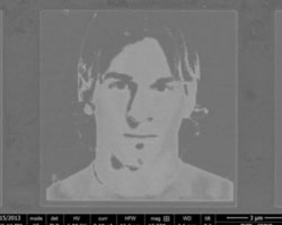 El Laboratorio de Micro y Nanoelectrónica del Bicentenario del INTI (CNMB) decidió mostrar su apoyo a la selección albiceleste con un grabado a escala nanométrica de una fotografía de su capitán, Lionel Messi.