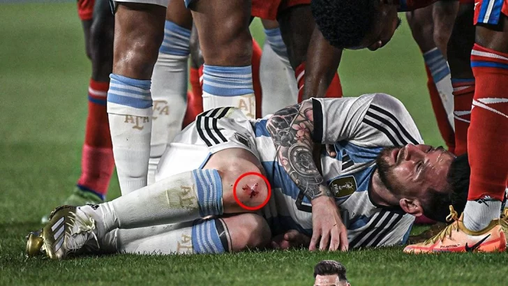 Lionel Messi, capitán y emblema de la Selección Argentina, recibió una durísima infracción y terminó con la rodilla ensangrentada, durante el primer tiempo del encuentro amistoso frente a Panamá en el Monumental.
