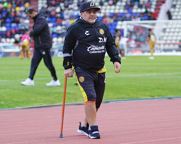 En julio del año pasado, Maradona tuvo que recibir una prótesis importante en su rodilla derecha, debido a las molestias que tenía para trasladarse. "Es la pierna que recibió todas las patadas", bromeó durante su recuperación el astro.