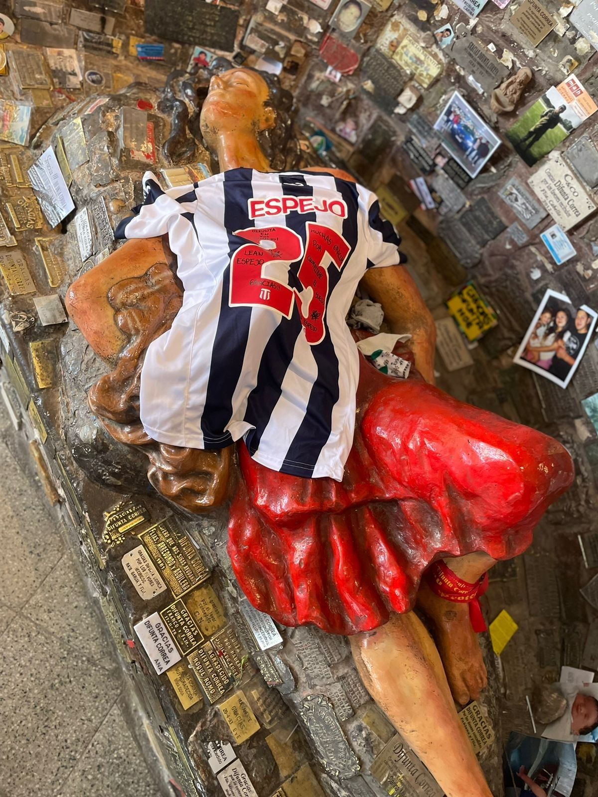 Este miércoles llegó desde Córdoba la camiseta de Leandro Espejo a la Difunta Correa