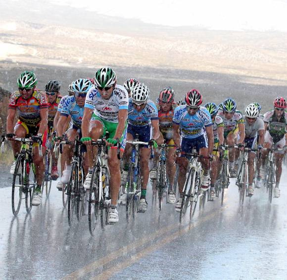 "A ver si me pasás el paraguas", gritaba y reía el conductor de una moto de auxilio, con los ojos finitos y la cara arrugada para tratar de que la lluvia le dejara ver. Para los sacrificados hombres de las motos y más aún para los ciclistas, no les quedó otra que tomarse la situación con humor. En el punto más alto de la subida, cuando la velocidad de los corredores era la más lenta y la puna se siente, se largó un aguacero tan intenso como increíble. Fue una sola nube negra que llegó para complicar todo, para hacer más dura la parte más dura, para agregarle peligro luego al descenso, para darle ese toque que sólo las grandes carreras tienen.