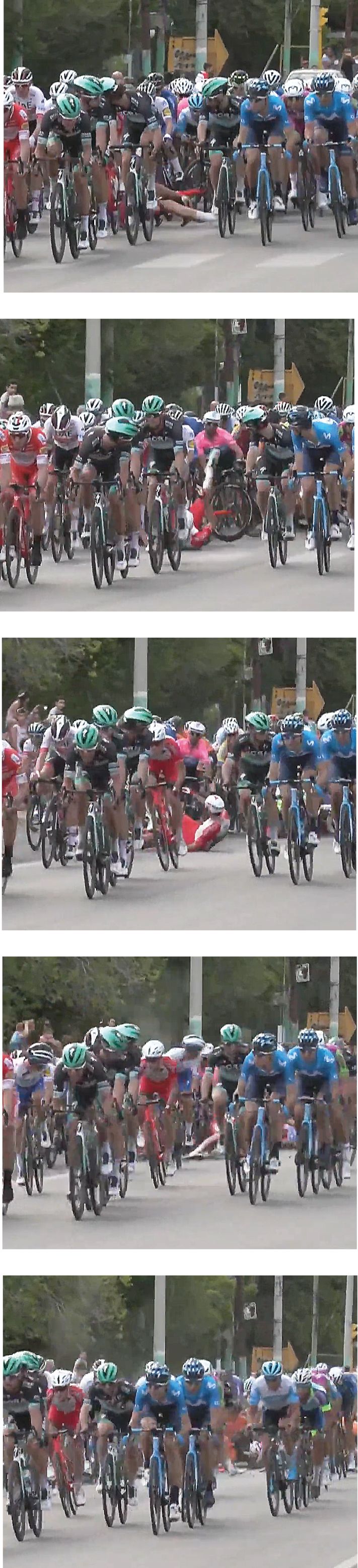 La primera fracción de la vuelta tuvo un accidente restando pocos kilómetros para la llegada.