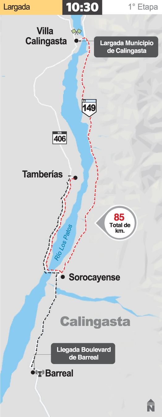 La carrera constará de tres tramos en línea, los dos de hoy (ver infografías) y el restante de mañana por la mañana, que será el más largo y que marcará un hecho inédito e histórico para la competencia, se visitará por primera vez uno de los puntos turísticos más importantes del lugar: la Pampa del Leoncito.