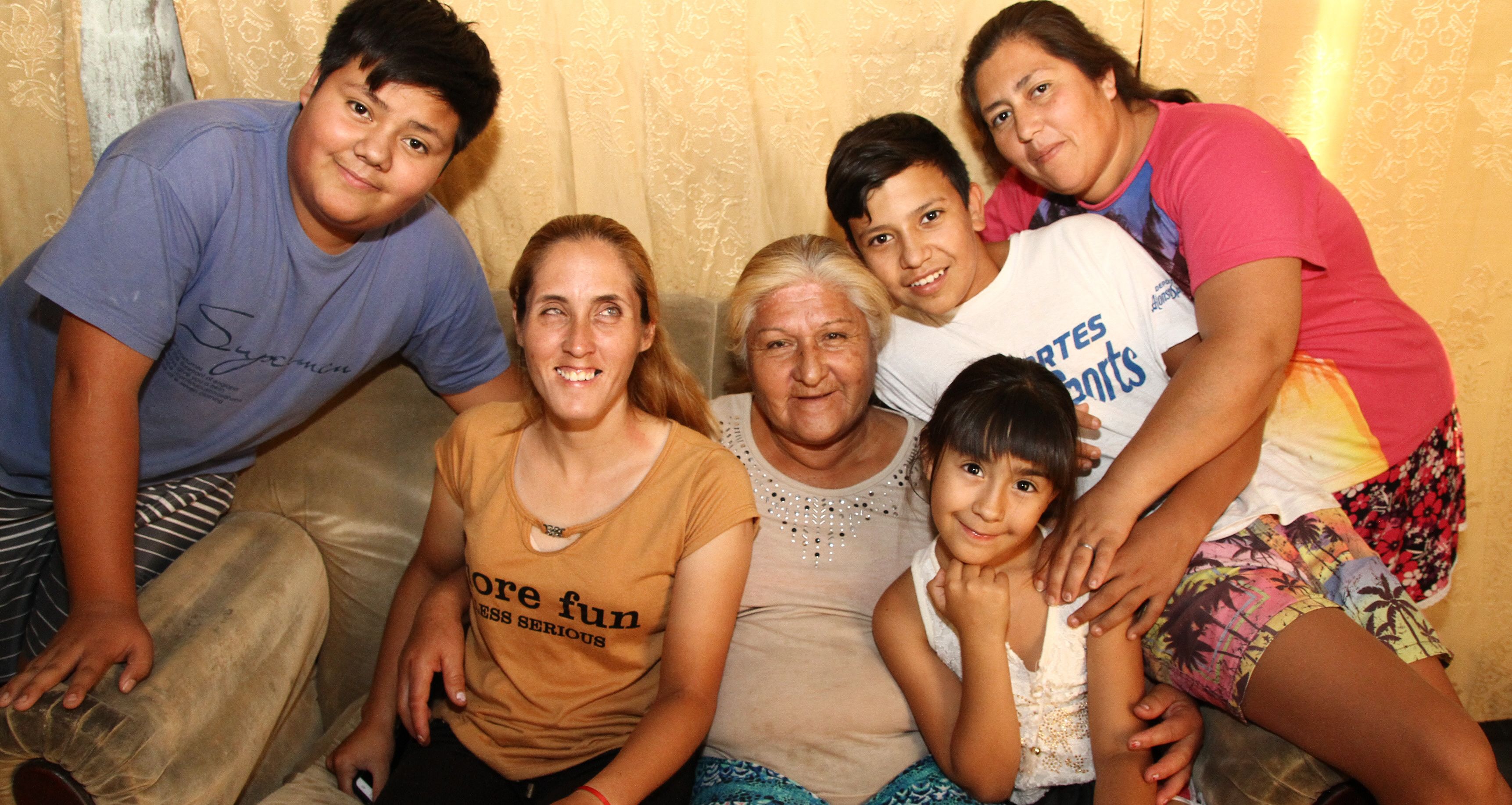 Sus pilares. Majo rodeada de su familia. Su abuela Elba quien adoptó el rol de madre cuando su padre la abandonó, su tía Edith y sus primos Valentín, Felipe y Alma. “Ellos son mis pilares en esta vida, nunca me hicieron sentir diferente a pesar de mi ceguera. Me crié haciendo las mismas cosas que ellos y todo lo que consigo va dedicado para ellos”, comentó la oriunda de Campo Afuera.