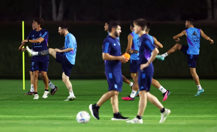 Para el trabajo táctico, Lionel Scaloni diferenció dos equipos. Montiel, Cuti Romero, Otamendi, Tagliafico, De Paul, Paredes, Mac Allister, Ángel Correa, Messi y Julián Álvarez. Esos diez hombres recibieron las pecheras. Si bien cuesta creer que el DT identifique tan pronto a un once titular, podrían haber varias sorpresas: Paredes en lugar de Enzo Fernández, las salidas de los dos laterales que jugaron ante Australia (Molina y Acuña) y que Correa reemplace al Papu Gómez, lesionado. En caso de que llegue Di María, podría ocupar el lugar del jugador del Atlético de Madrid.