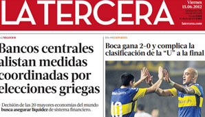 Buenos Aires, 15 de junio.- El diario La Tercera tituló hoy: "Boca le dio un duro golpe a la `U´ que deberá buscar otra hazaña en el Nacional (estadio)", cuando ambos equipos se enfrenten el 21 de junio en Santiago.