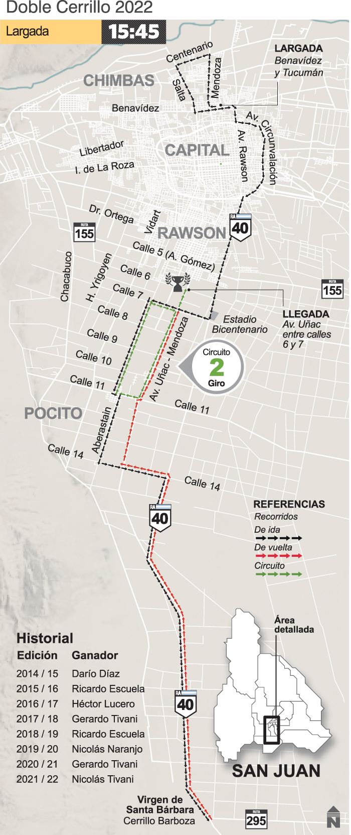 La primera clásica en disputarse será la Mendoza – San Juan (6 de noviembre), la edición de Bodas de Oro de la Doble Chepes, irá entre el 2 y 4 de diciembre; mientras que la Doble Media Agua, la carrera de más ediciones, se disputará el domingo 18 de diciembre; y la Doble Difunta Correa, se correrá el domingo 1 de enero de 2023.