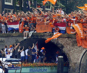 Ese sitio, donde se montaron pantallas gigantes para la ocasión, fue también el más concurrido durante los partidos de Holanda en el Mundial de Sudáfrica, torneo en el que ganó seis duelos y perdió sólo uno: justamente la final con España.