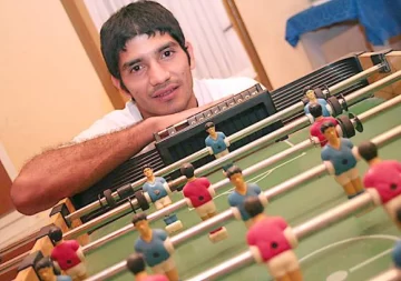 Luego, a la hora de sacar la foto, González sugirió que sea "en mi metegol, soy fanático. Juego todos los días. Es mi distracción al igual que la play".