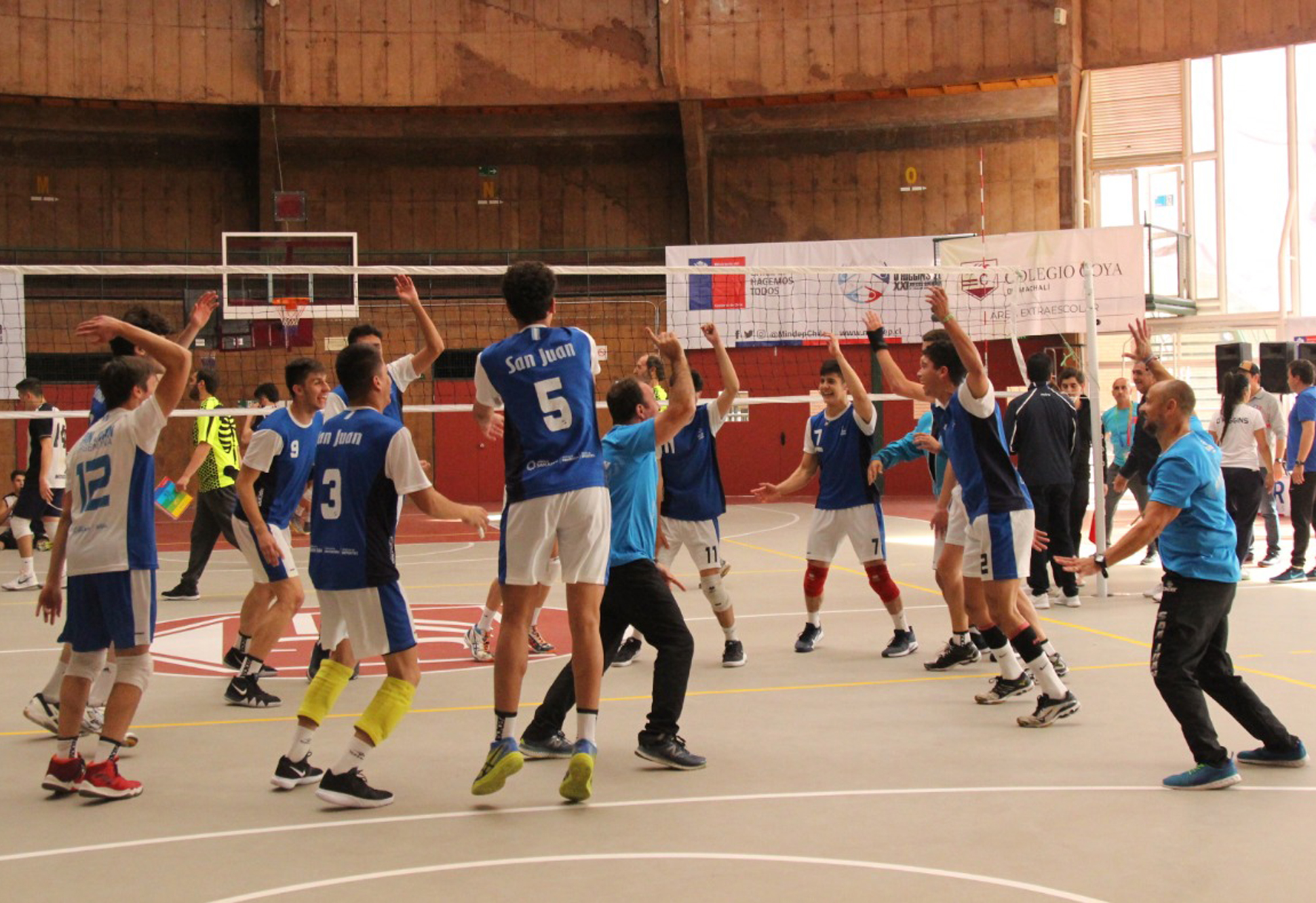 GRAN FESTEJO, se desató en la cancha montada en el gimnasio Hermógenes Lizana. Los pibes sanjuaninos jugaron el partido perfecto y sometieron a Mendoza en tres sets, logrando el objetivo que se habían planteado que era el de repetir la medalla dorada conseguida el año pasado en Córdoba.