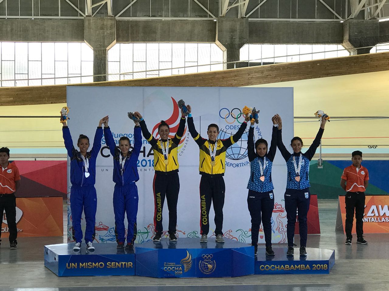 La joven Maribel Aguirre sumó una medalla más en su cuello luego de quedar en la tercera posición en la prueba Madison, junto a su compañera Cristina Greve.