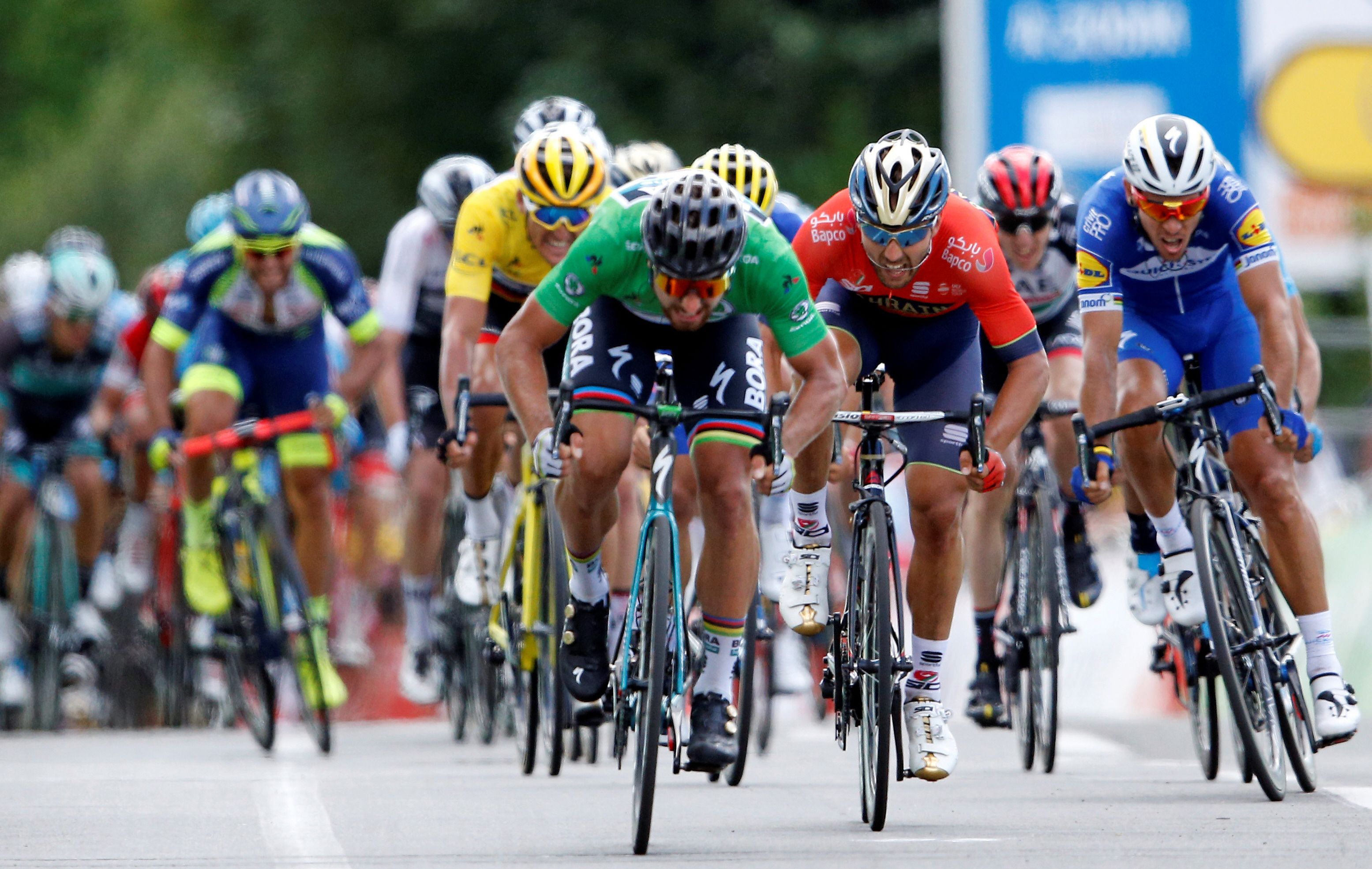 A Sagan lo acompañaron Sonny Colbrelli y Phillipe Gilbert en segundo y tercer lugar. "Para poder ganarle a Gaviria hay que esperar que cometa un error", dijo Sagan, reconociendo a Gaviria como el mejor embalador del mundo. Hoy, la etapa unirá Brest con el Muro de Bretaña (181 kilómetros), una subida que podría provocar cambio de líder.