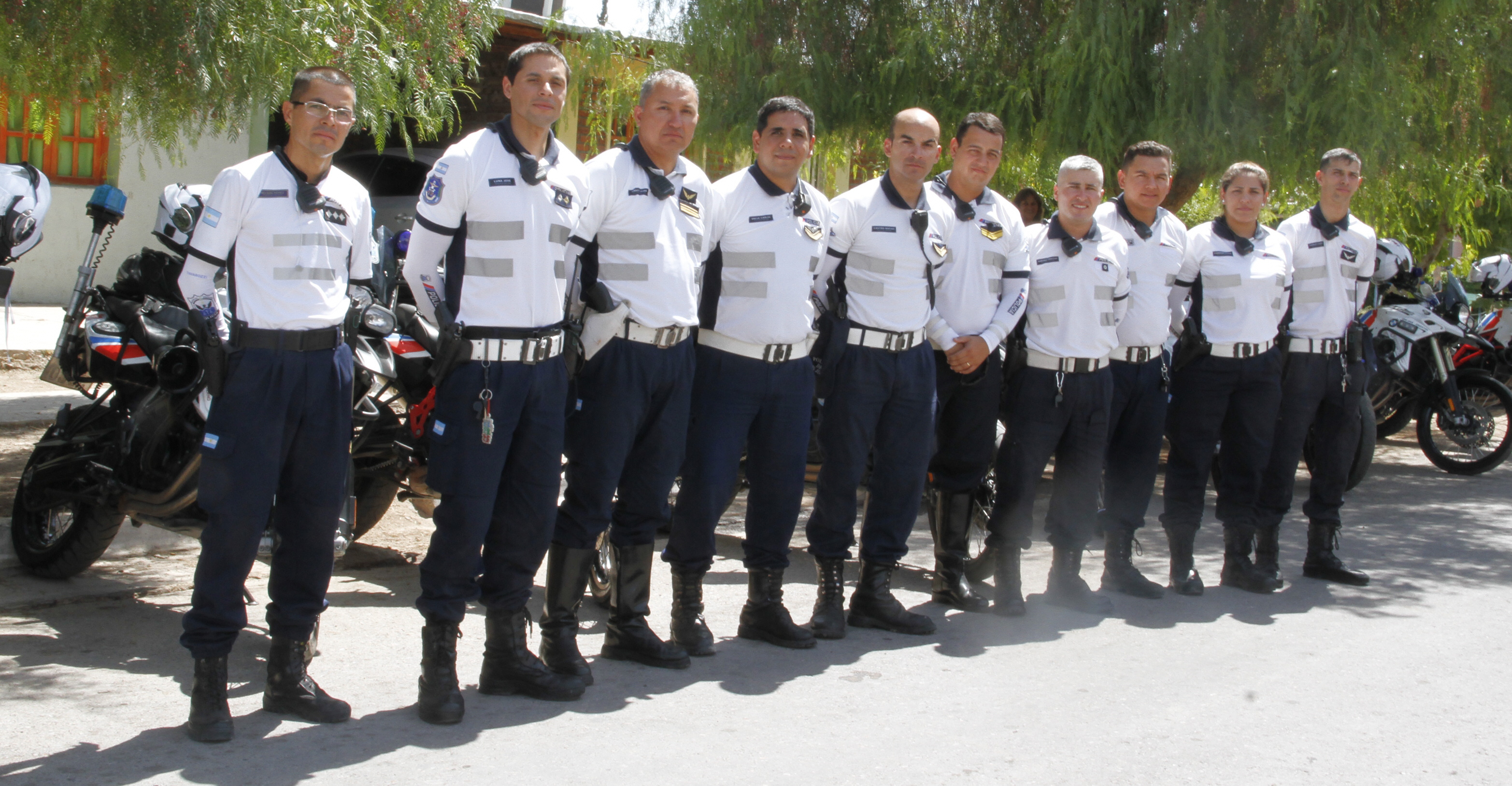 La División Transito de la Policía, hace su aporte a las seguridad con el principal, Nelson Pérez; el oficial subinspector, José Luna; el sargento ayudante, Juan García; los cabos, Carlos Valle, Carlos Aballay y Matías Castro; los agentes, Cristian Sánchez, Maximiliano Molina, Nadia Carmona y Federico Cuadrado.