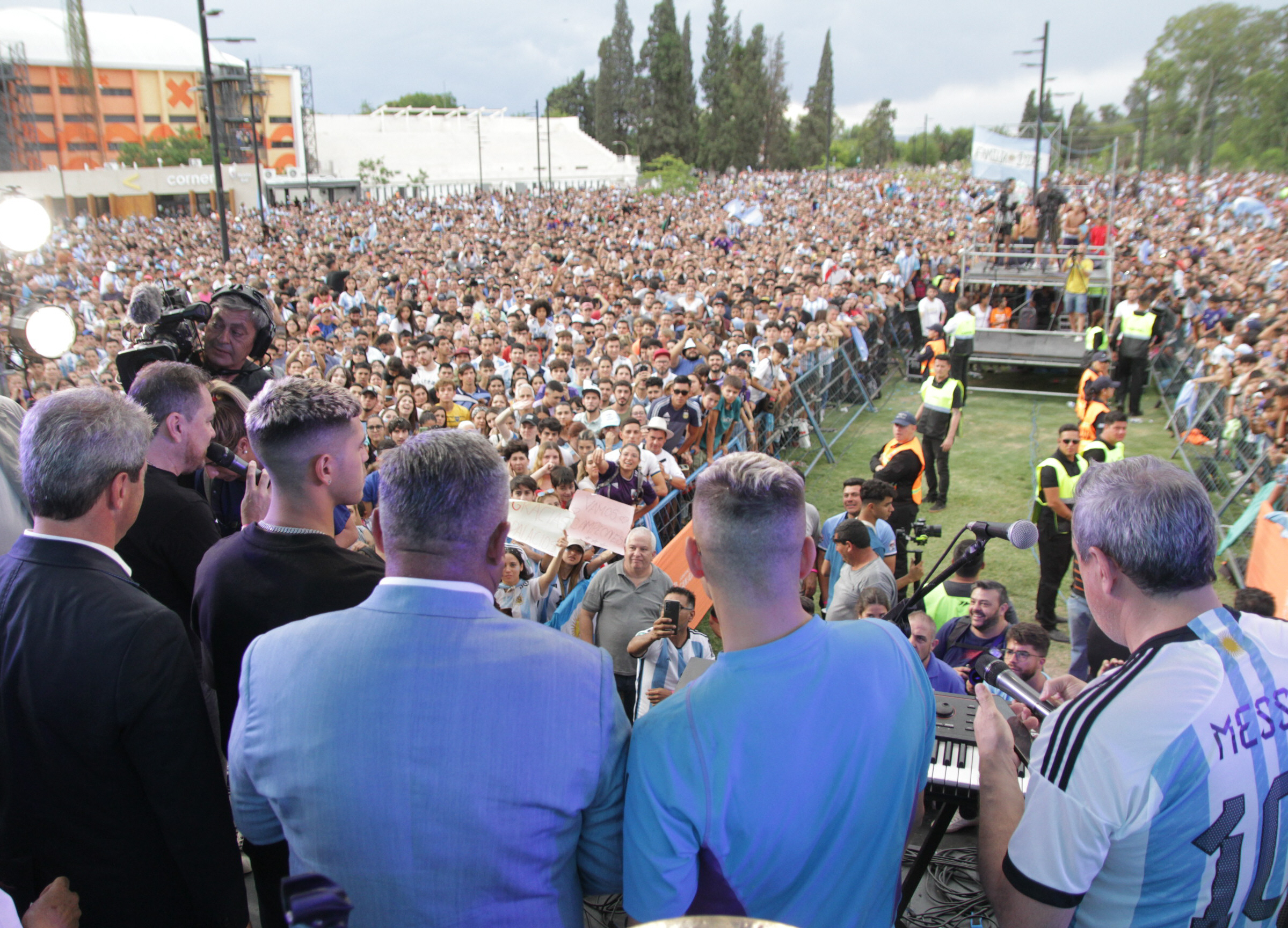 Pero una vez en el oratorio de la Difunta Correa se pudo observar a algunos integrantes de la comitiva que la manipularon. Luego, en el Parque de Mayo, fue Tapia quien la llevó al escenario. En todo momento la copa estuvo custodiada por personal de seguridad: hombres con remeras blancas de una agencia y otros con traje y corbata, que habitualmente acompañan al mandamás de la AFA, rodearon al sanjuanino y a las demás autoridades, conformando un anillo humano que iba moviéndose a cada paso.