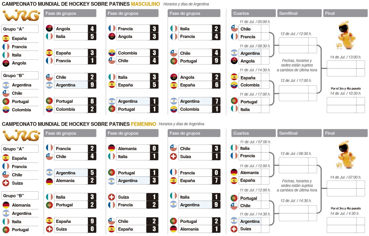 En las mujeres, además del choque entre Las Águilas ante Suiza, los otros cuartos de final serán: España-Alemania, Chile-Portugal y Francia-Italia.