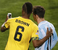 Pero el que primereó para quedarse con un souvenir fue el delantero Deshorn Brown, porque el hombre de punta de los Reggae Boyz, tenía presto un teléfono celular para sacarse una selfie con el astro del fútbol mundial en el medio del campo de juego del estadio Sausalito, donde Argentina se volverá a presentar el viernes próximo por los cuartos.