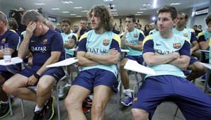 Los primeros en ingresar a la sala de prensa fueron los jugadores. A Messi se lo vio muy cabizbajo, claramente triste, como a los demás. Leo se sentó en primera fila, entre Pinto a Puyol, cerca de Roura. “Hemos estado con los capitanes, con los más veteranos, con los jóvenes, con todos, a los que les agradezco que este en esta sala. Hemos decidido no ir a jugar a Polonia, ya que no hay ánimos para hacerlo. También quiero decirles que la vida continúa. Este es un golpe muy duro para le Barsa, durísimo, pero siempre nos hemos repuesto a los golpes y hoy no será una excepción”, largó el presidente, intentando levantar un poco el ambiente. Como dijo, no jugarán el sábado ante el Lechia en Gdansk, en lo que iba a ser el primer amistoso de la pretemporada.