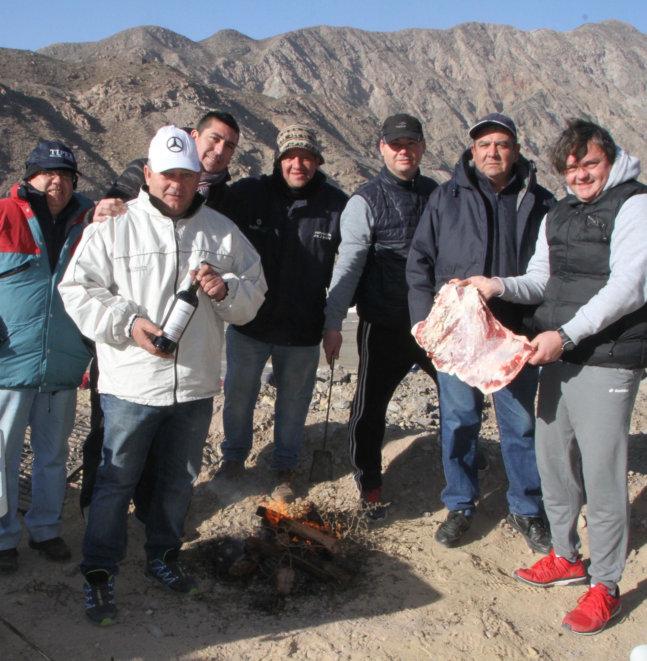 Octavio, Raúl, Sergio, Renzo, Ciro, Marcelo y Enzo llegaron desde Media Agua y tiraron a la parrilla una punta de espalda.