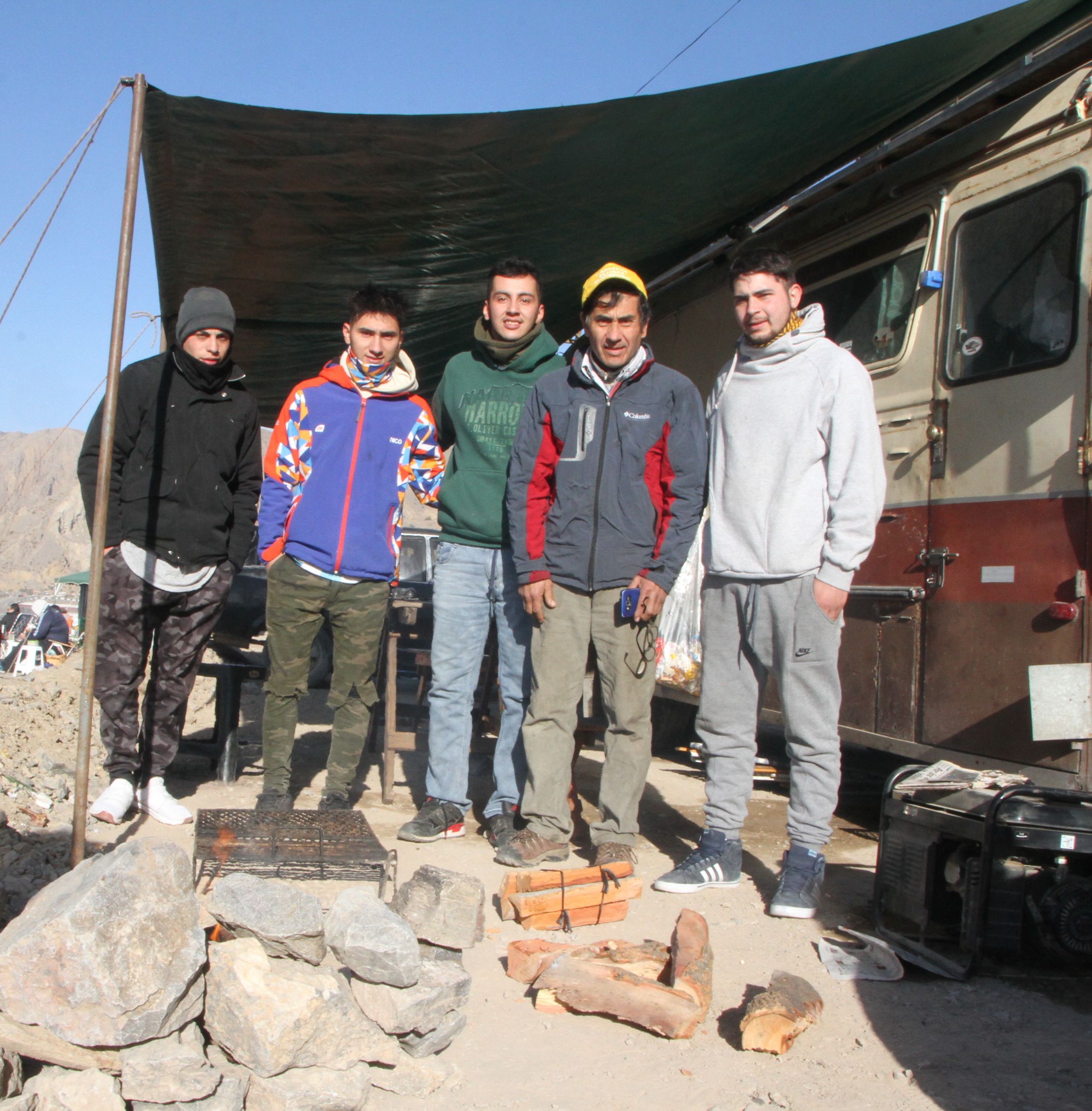 Carlos, Agustín, Nicolás, Alexis y Manuel llegaron el viernes en casa rodante, totalmente equipados y hasta con grupo electrógeno.