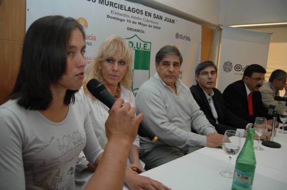 Durante una conferencia de prensa realizada ayer, fue anunciada oficialmente la presencia del seleccionado argentino de fútbol para ciegos (Los Murciélagos) por primera vez en San Juan, el próximo 10 de mayo. El club Estudiantil es el encargado de la organización del evento. María José (egresada de la Escuela Braile) fue la encargada de la presentación, a la que asistieron Sandra Lirio, el intendente Aníbal Fuentes, el ministro Daniel Molina, y los hermanos Luis y Daniel Martinazzo.