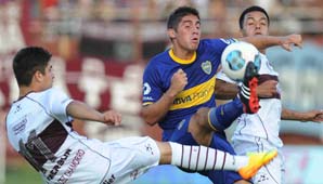 Buenos Aires, 1 de diciembre.- Lanús y Boca Juniors igualaron hoy 2-2 en un partido vibrante y accidentado, en el que el equipo local, integrado por mayoría de suplentes, terminó con dos jugadores menos, pero consiguió finalmente un resultado que lo mantiene en carrera por el Torneo Inicial.