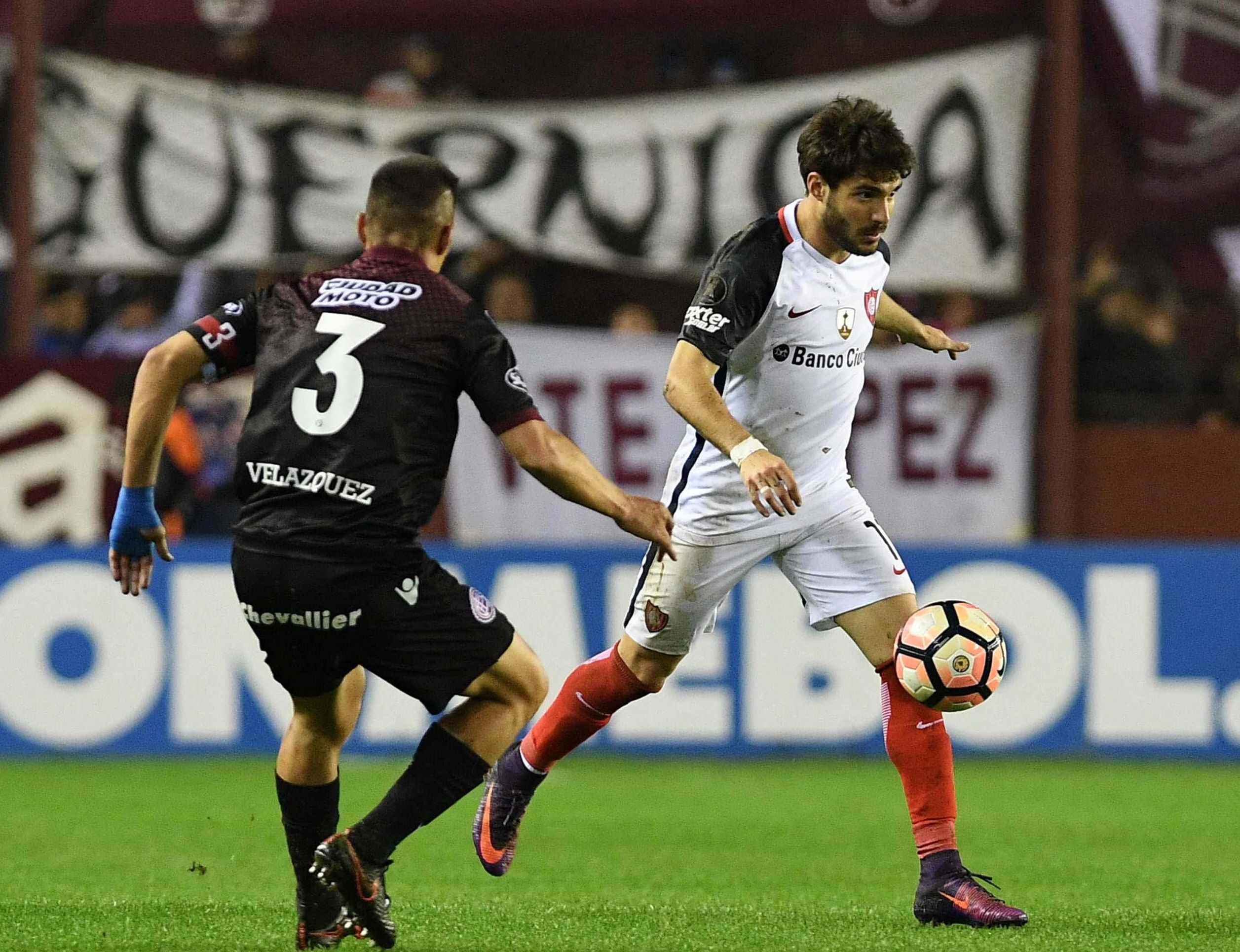 La primera etapa fue el anverso de lo sucedido la semana pasada en el Nuevo Gasómetro, ya que esta vez fue Lanús el que presionó de manera constante. Lentamente el equipo de Diego Aguirre fue equilibrando el juego y, aunque Lanús estuvo más cerca de aumentar (un remate de Sand se estrelló en el travesaño, el desarrollo se hizo parejo y retempló el ánimo de la visita.