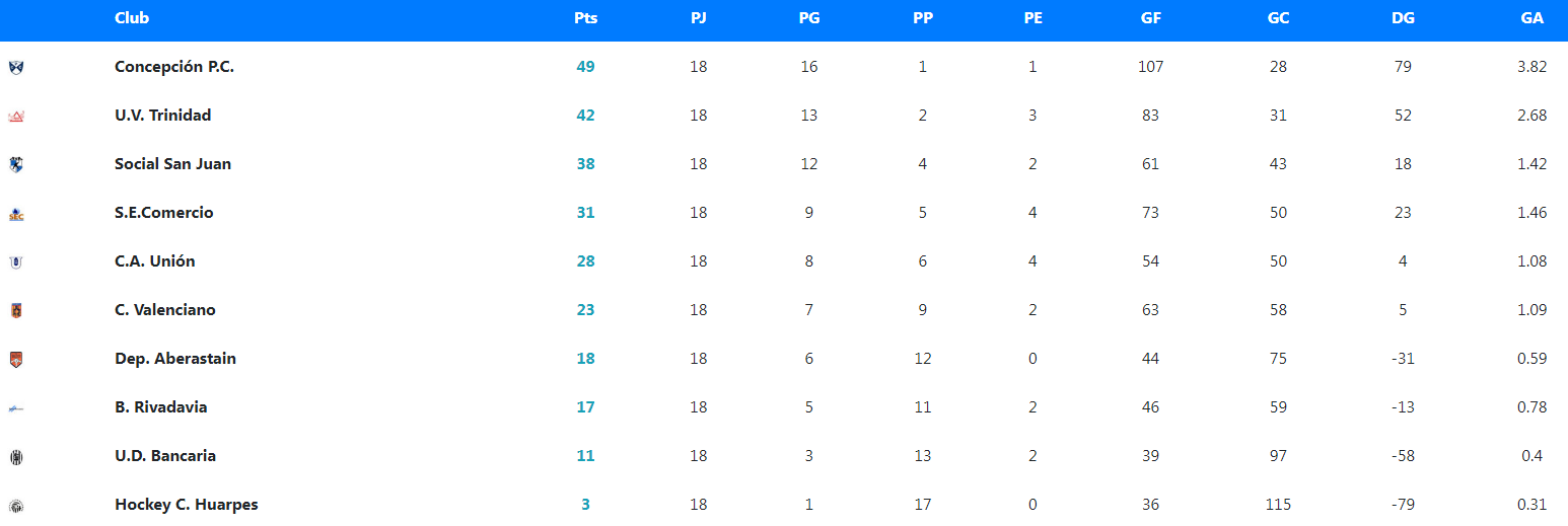 El Azul dio una cátedra deportiva ante su gente, goleó por 10-2 a Huarpes y dio una nueva vuelta olímpica. De principio a fin fue amo y señor del certamen, con victorias abultadas en la mayoría de los partidos y números que respaldan una gran campaña: 16 triunfos, un empate y una sola derrota en 19 juegos, con 49 puntos. Espectacular.