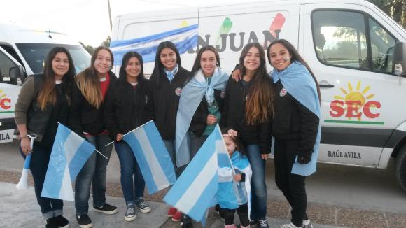 San Juan, 29 de junio.- Un de los primeros grupos que llegó al Estadio del Bicentenario fue el de las chicas del Sindicato de Empleados de Comercio.