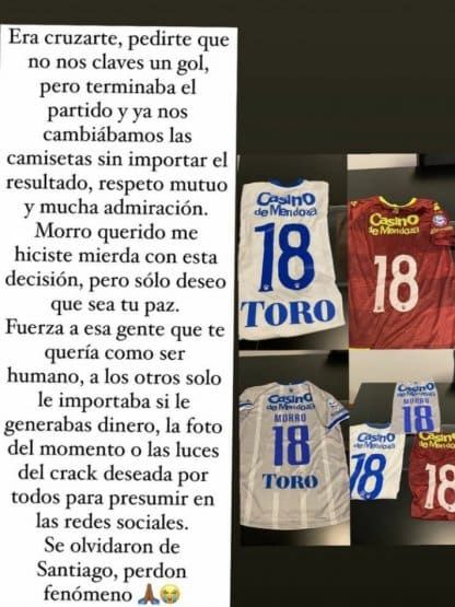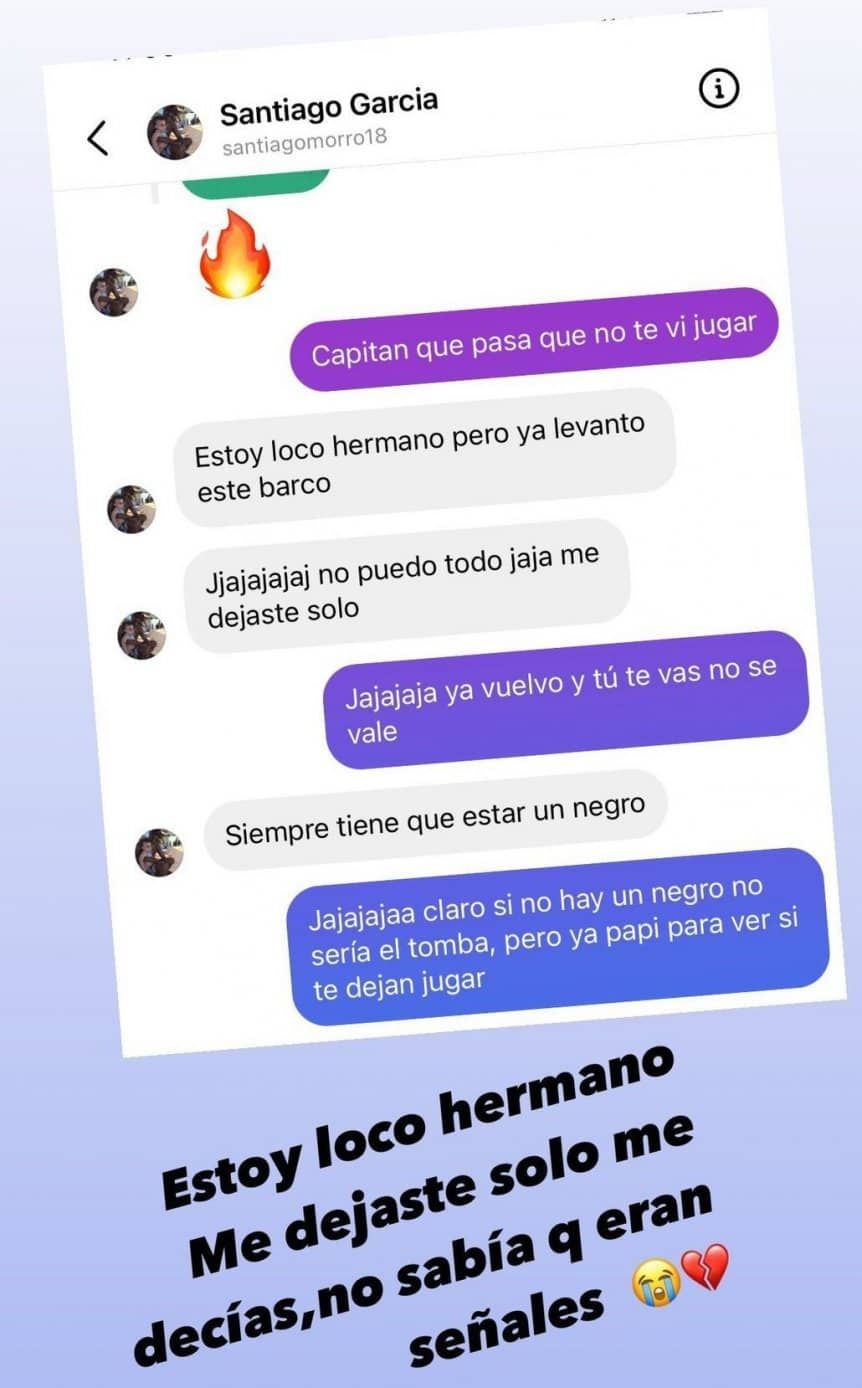 El atacante de 32 años compartió una historia en su cuenta de Instagram junto a su excompañero y luego otra más en la que muestra una reveladora conversación que habían mantenido días, en la que el Morro, sin que el ecuatoriano lo advirtiera, manifestó su situación.