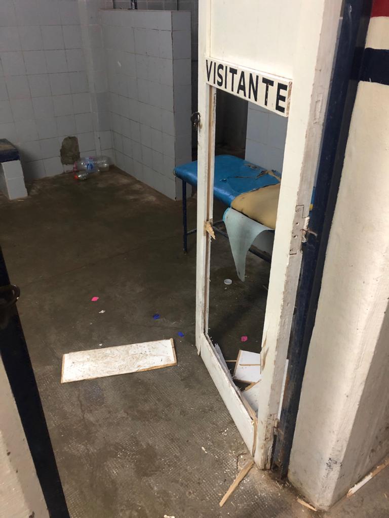 Antes de abandonar el estadio Ramón Pablo Rojas, la delegación visitante rompió puertas, camillas y hasta los accesorios de la zona de duchas en el camarín visitante, dejando grandes pérdidas e imágenes lamentables.