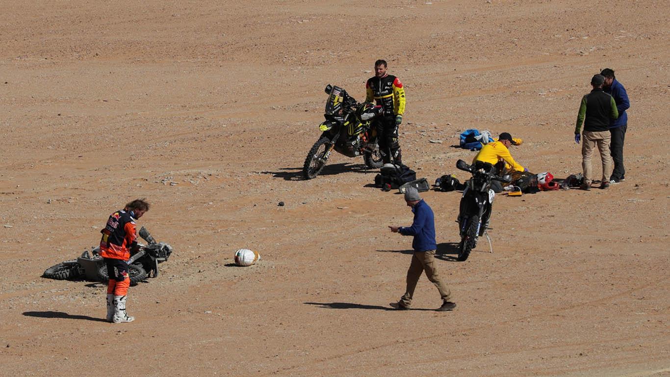 Uno de los pilotos que se detuvo a ayudar al motociclista accidentado fue el australiano Toby Price (KTM), último ganador del Dakar y tercero en la clasificación general de la actual edición del rally.