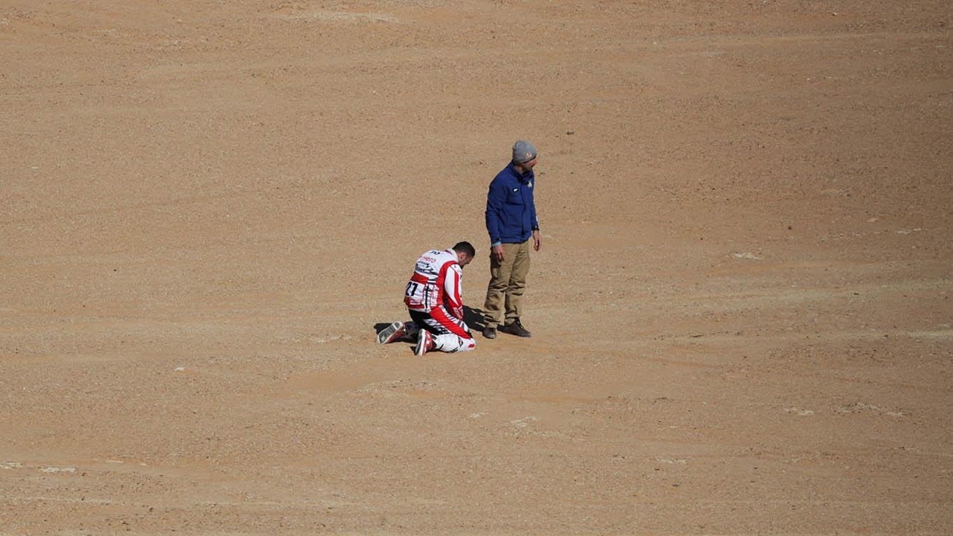 El kilómetro 263 de la séptima etapa del Rally Dakar es solo arena. Está ubicado en pleno desierto, entre la ciudad de Riad y la ciudad de Wadi Al Dawasir, en Arabia Saudita. Allí se armó un pequeño altar. Algo improvisado, en donde algunos pilotos se detenían conmovidos. Allí yacía inerte el cuerpo de Paulo Gonçalves, el piloto portugués que perdió la vida después de un accidente fatal.
