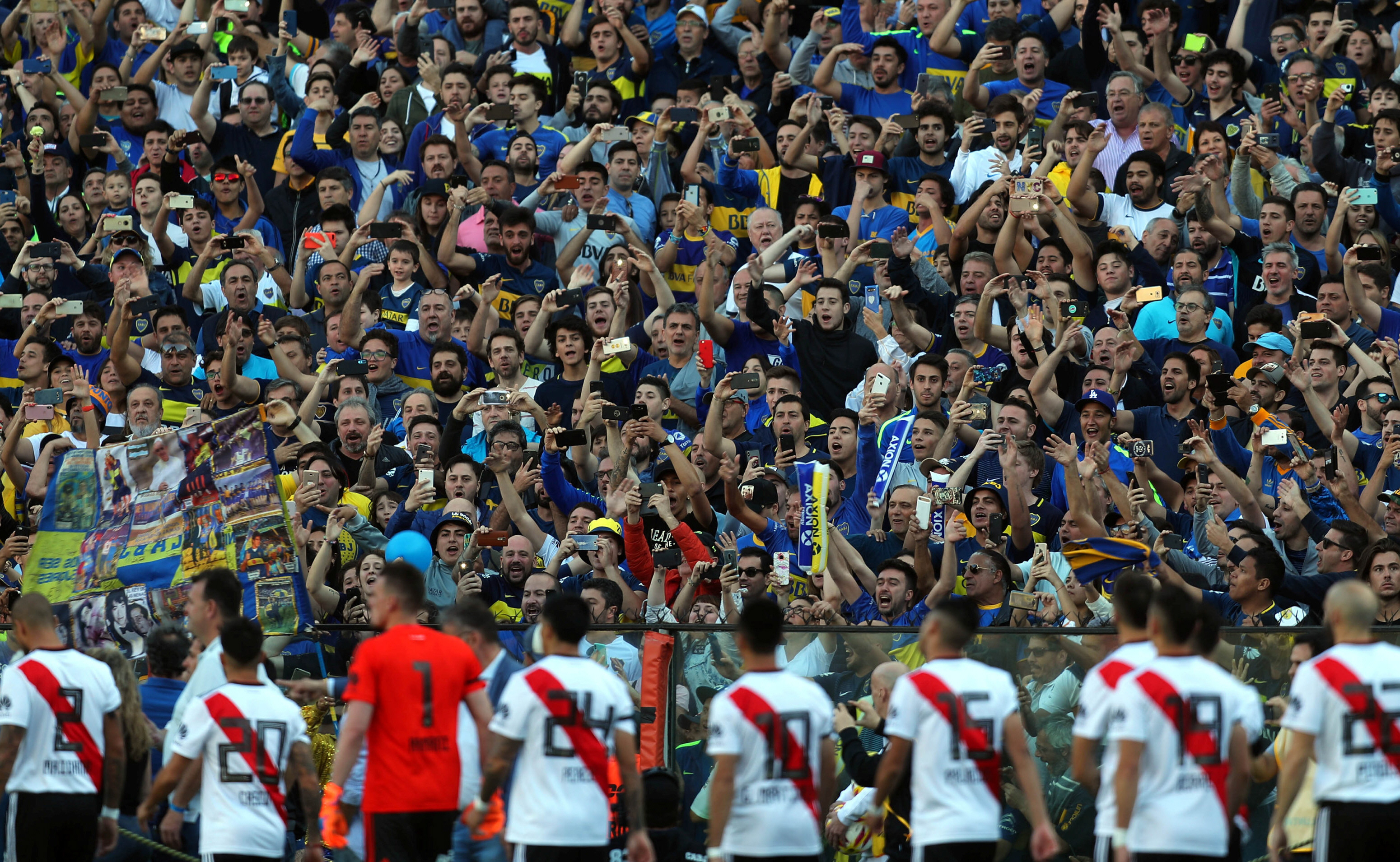 Sin aliento. Los jugadores de River entrando a la Bombonera con toda la tribuna en su contra. Después el Millonario mostró personalidad y ganó.