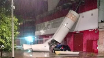 En la calle Bochini, una antena que llevaba un cartel publicitario cayó sobre un auto por los fuentes vientos y afortunamente no dejó heridos. Es un comercio privado y no pertenece al club de Avellaneda.