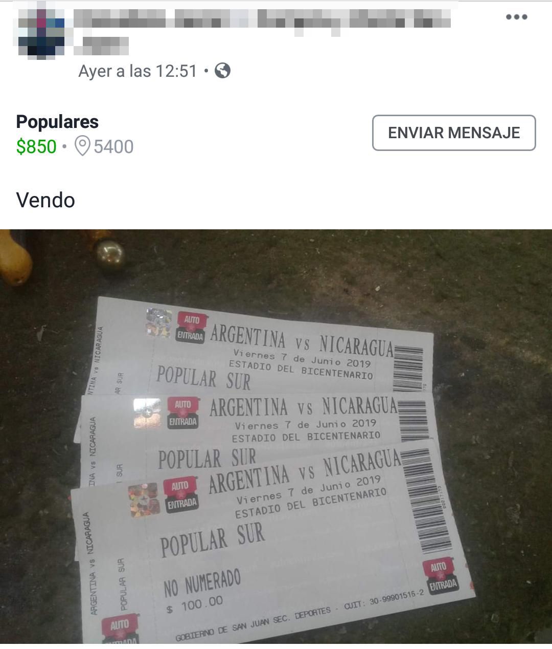 Por eso, en las redes sociales comenzaron a circular ofrecimientos de todo tipo, con precios muy variados. Algunos venden las populares que se conseguían por $100 en el Estadio Aldo Cantoni a $850. Otros las ofrecen al mejor postor, con una base de $500.