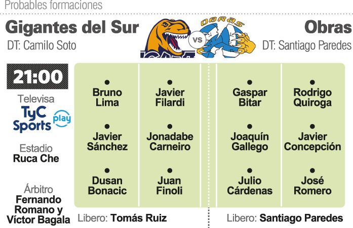 Los actuales subcampeones de Liga cayeron la semana pasada por 3 a 0 en el Cantoni. En un duelo parejo, pero siempre favorable para los neuquinos, Obras perdió con parciales de 25-23, 25-18 y 28-26 y de esta manera sucumbió por quinta vez ante Gigantes en lo que va de la temporada. Antes había perdido tres partidos de fase regular (primera y segunda rueda y Grand Prix) y en Copa Argentina. "Vamos a dejar todo para revertir la situación. En la ida jugamos bien en bloqueo y defensa, pero ellos lo hicieron mejor y eso hay que cambiarlo", dijo Rodrigo Quiroga, capitán del conjunto sanjuanino. Obras hoy buscará ganar por el resultado que sea y de esa manera equilibrar la serie. En este caso, el partido desempate se jugará también en el Ruca Che el próximo sábado.